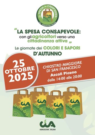 L’iniziativa, in programma sabato 25 ottobre dalle ore 14 alle 20 presso il Chiostro Maggiore di San Francesco ad Ascoli Piceno, rientra nel calendario nazionale delle Giornate dei Colori e Sapori d’Autunno, dedicate quest’anno al tema “La spesa consapevole: con gli agricoltori verso una cittadinanza attiva”.