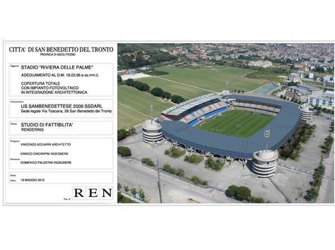 Con la ristrutturazione dello stadio, San Benedetto torna ad iscrivere il suo nome tra le città che, in Italia, detengono dei primati legati alla genialità ed allo spirito imprenditoriale dei suoi abitanti. Molti sanno che proprio a San Benedetto venne varato il primo peschereccio italiano con motore ausiliario, alcuni sanno che la Telecolor Tvp, negli anni Settanta, fu la terza emittente libera nazionale ad iniziare i suoi programmi; le generazioni future apprenderanno che il Riviera delle Palme è stato il secondo impianto italiano a dotarsi di una copertura con pannelli solari dopo il Bentegodi di Verona. Anzi, per certi versi, il primo.
